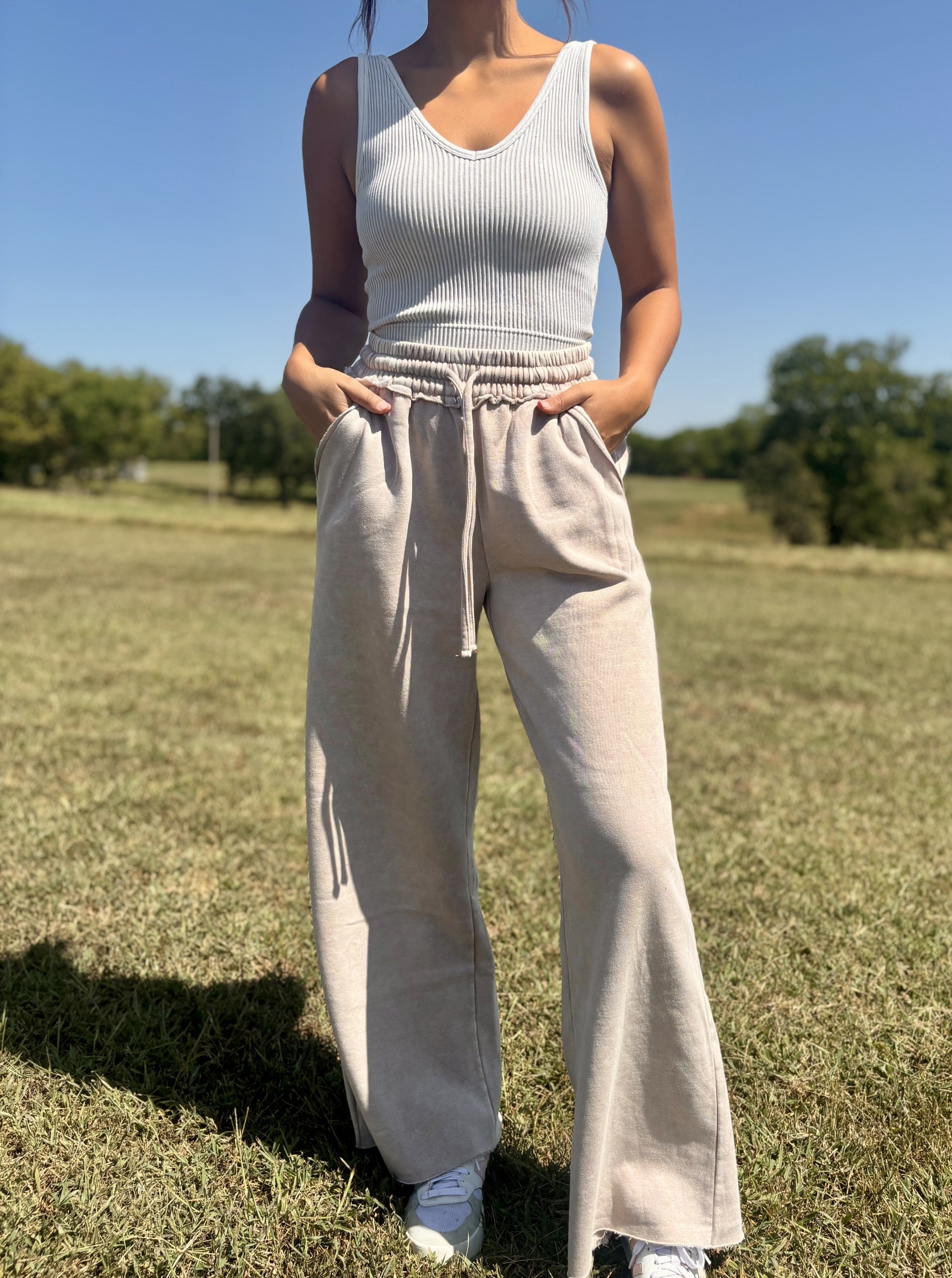 Acid Wash Fleece Sweatpants-Ash Mocha