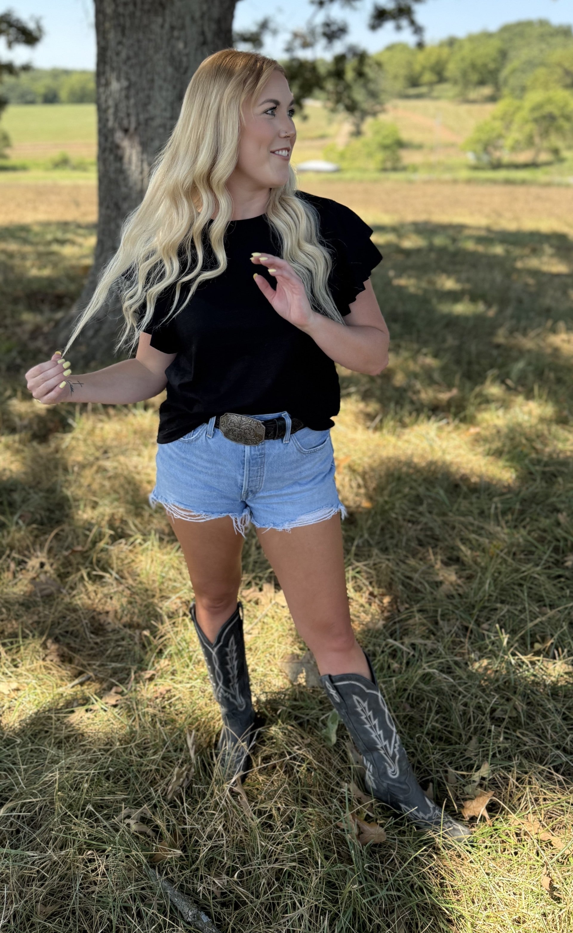 This ruffled top will add a touch of elegance and playfulness to your wardrobe!